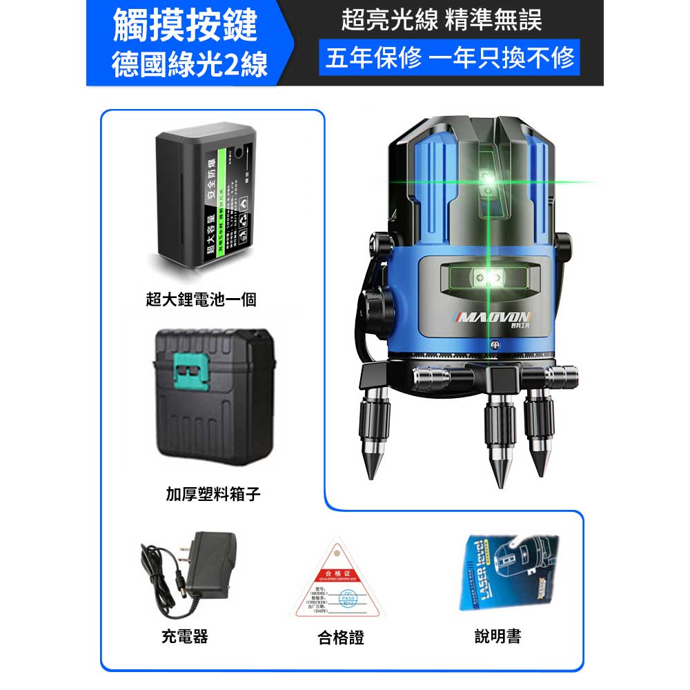 4分鐘前熱銷破萬件!戶外清晰可見【德國MAOVON】歐司朗綠光2/3/5線鐳射儀 - 【2線】雙電+支持調光+三腳架 NT$2250